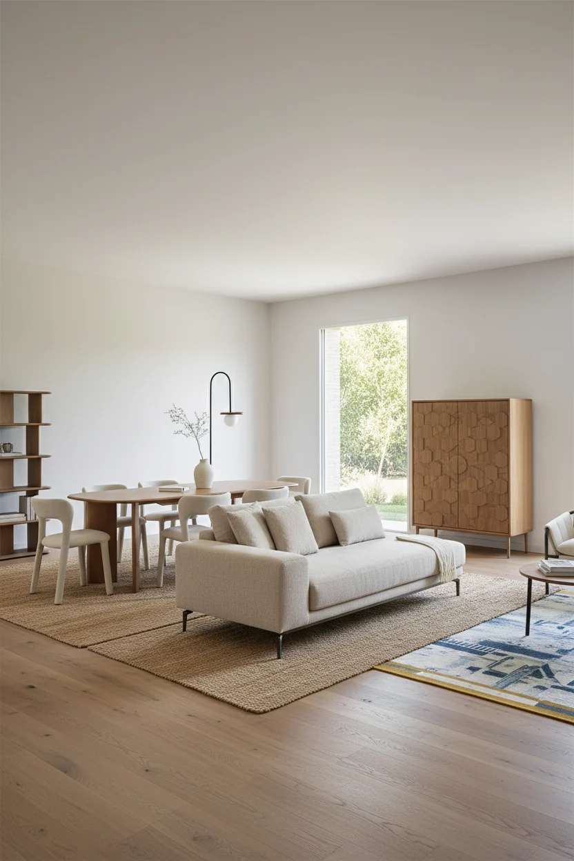 Escena editorial inspirada en Alfombras de Yute Natural, compuesta con piezas reales del catálogo de Dupo y equilibrada entre volumen, apoyo y ambiente.