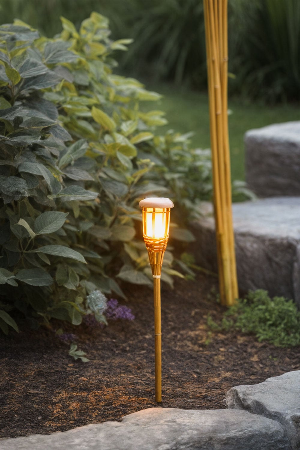 Añade un toque de calidez natural y elegancia rústica a tus espacios exteriores con nuestra Antorcha LED solar para exterior en bambú Tasya. Diseñada para realzar tu jardín o terraza, esta pieza de iluminación no solo embellece, sino que también es una solución sostenible y práctica para crear ambientes acogedores al caer la noche. Su diseño minimalista y funcional se integra a la perfección con cualquier decoración, invitando a disfrutar de momentos inolvidables al aire libre.