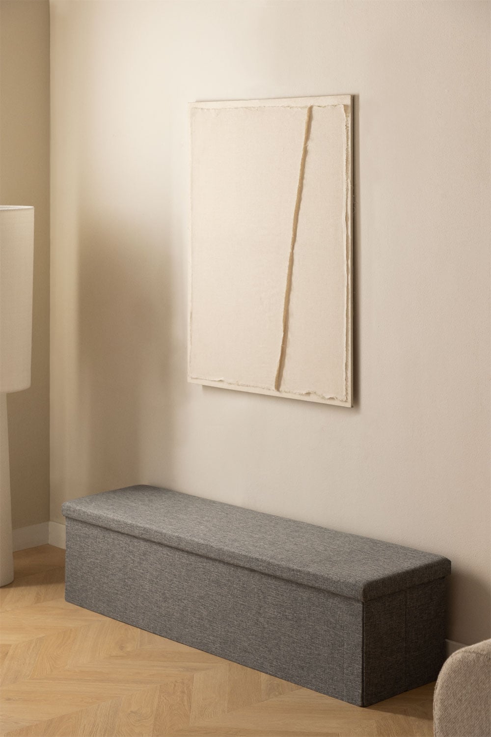 De estilo nórdico, el baúl Gipto se integra a la perfección en ambientes minimalistas y modernos. Su color gris neutro lo convierte en un mueble versátil que puedes combinar con una amplia gama de colores y texturas. Utilízalo como asiento adicional en el salón, como pie de cama en el dormitorio, o como un elemento decorativo más. Su diseño sencillo y elegante te permite crear un espacio armonioso y funcional, donde el orden y la belleza conviven en perfecta sincronía. Combínalo con cojines de colores vivos para un toque más alegre, o con mantas de lana para un ambiente más cálido y acogedor. La versatilidad del baúl Gipto te permite adaptarlo a tu estilo personal y a las necesidades de tu hogar.