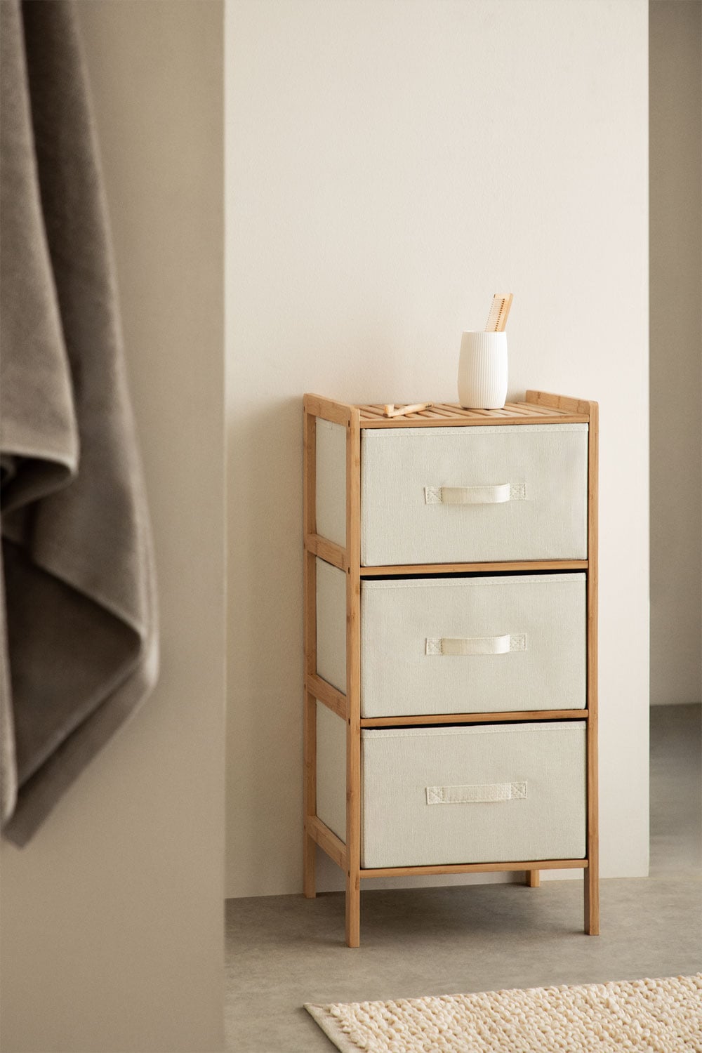 Descubre la versatilidad y el encanto natural de nuestra cajonera bambú 3 cajones. Perfecta para optimizar el espacio y añadir un toque de calidez a cualquier rincón de tu hogar, esta cómoda auxiliar de estilo nórdico se integra a la perfección tanto en el baño como en el dormitorio o el salón. Su diseño funcional y estético la convierte en un elemento imprescindible para mantener el orden con elegancia.