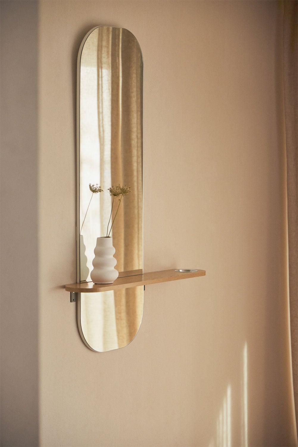 Este espejo de pared con estante es perfecto para el recibidor o el salón, pero su versatilidad permite adaptarlo a otros espacios. El estilo nórdico se presta a la combinación con elementos minimalistas, tonos neutros y texturas naturales. Imagina este espejo reflejando la luz que entra por la ventana, creando un ambiente acogedor y lleno de vida. Combínalo con plantas, velas aromáticas o pequeños objetos decorativos para personalizarlo y hacerlo aún más especial. Su diseño permite que se integre armoniosamente con diferentes estilos, desde el más moderno hasta el más clásico. No dudes en jugar con los contrastes para crear un espacio único y con personalidad.