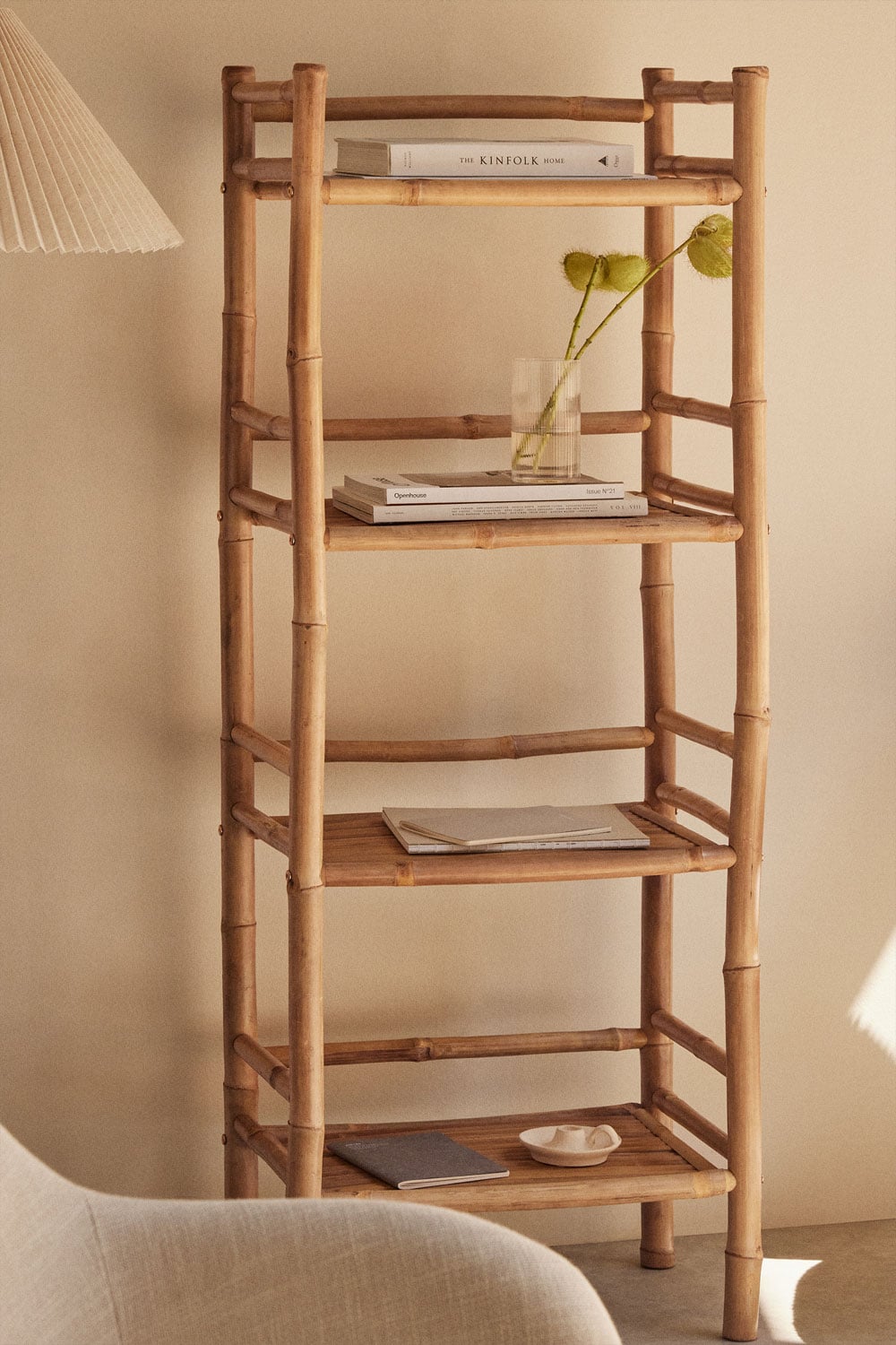 La estantería de bambú se inspira en la sencillez y funcionalidad del diseño nórdico. Sus líneas rectas y su color natural la hacen fácilmente combinable con otros estilos decorativos. Úsala para exhibir tus libros, plantas, marcos de fotos o cualquier otro objeto decorativo. En el salón, aportará un toque de calidez y orden; en el dormitorio, creará un ambiente relajante y acogedor; y en la entrada, dará la bienvenida con un estilo moderno y funcional. Combina esta estantería con otros muebles de madera clara, textiles suaves y elementos naturales para crear un espacio armonioso y lleno de personalidad.