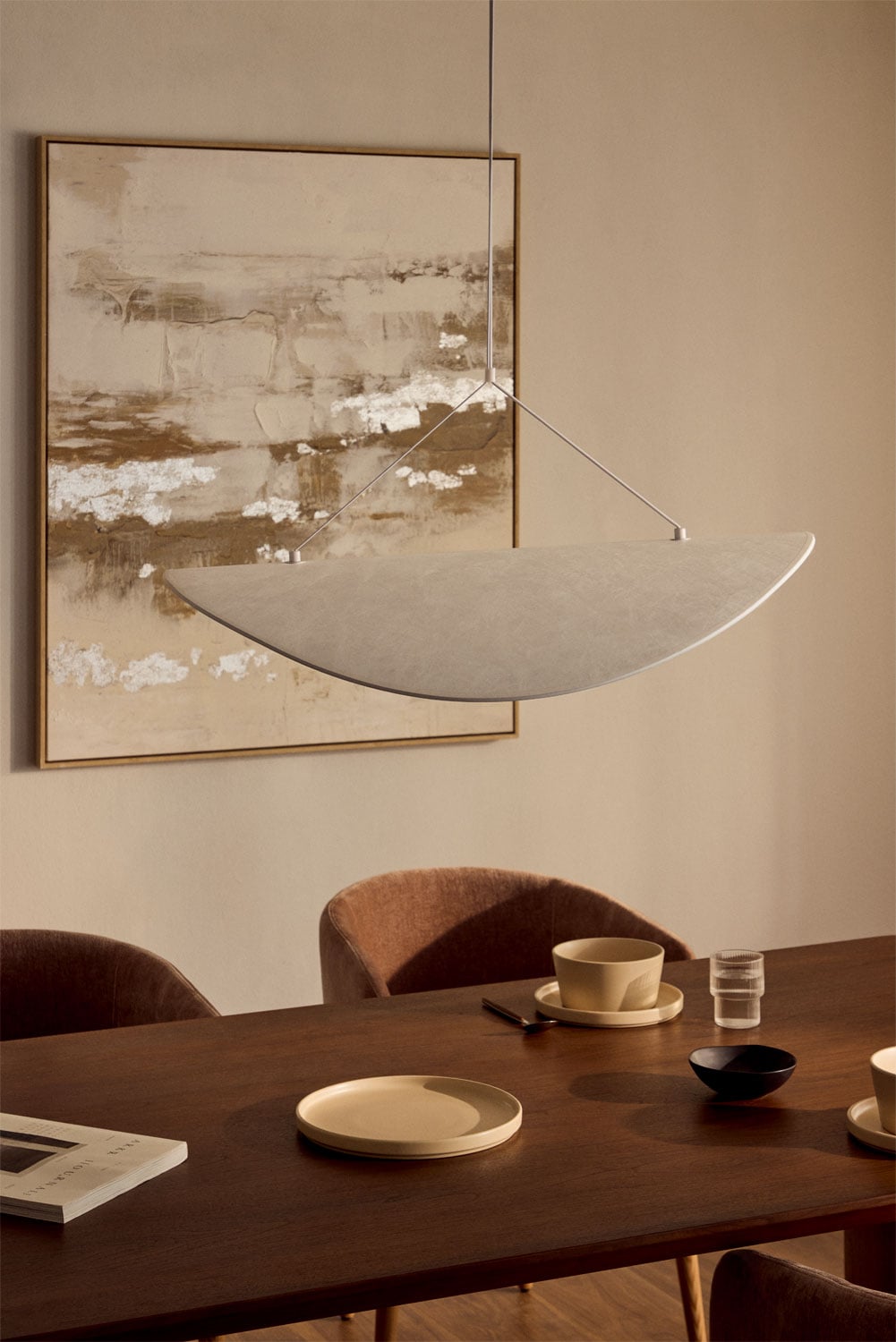 La forma curva y minimalista de esta lámpara la convierte en una pieza adaptable a una amplia gama de estilos decorativos. En un salón de estilo moderno, la lámpara se integra a la perfección, complementando líneas limpias y colores neutros. En un comedor, puede ser el elemento central sobre la mesa, creando un ambiente íntimo y agradable para disfrutar de tus comidas. Su color beige neutro permite combinarla fácilmente con otros colores y materiales, desde maderas claras hasta textiles con estampados sutiles. Atrévete a combinarla con elementos decorativos en tonos dorados o cobrizos para un toque de glamour, o con plantas de interior para un ambiente más natural y relajante.