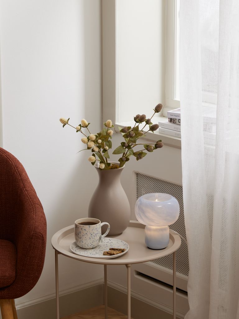El estilo nórdico de esta mesa auxiliar la convierte en un elemento clave para crear ambientes relajados y luminosos. Su diseño sencillo y elegante se integra fácilmente en decoraciones minimalistas, modernas o incluso de estilo bohemio. Combínala con otros muebles de madera clara y textiles suaves para potenciar su calidez y crear un espacio acogedor. Utilízala como mesita de noche junto a una cama de lino y una lámpara de diseño, o como mesa auxiliar en tu salón para apoyar el mando a distancia y tu taza de café mientras disfrutas de tus momentos de relax. Las posibilidades son infinitas.