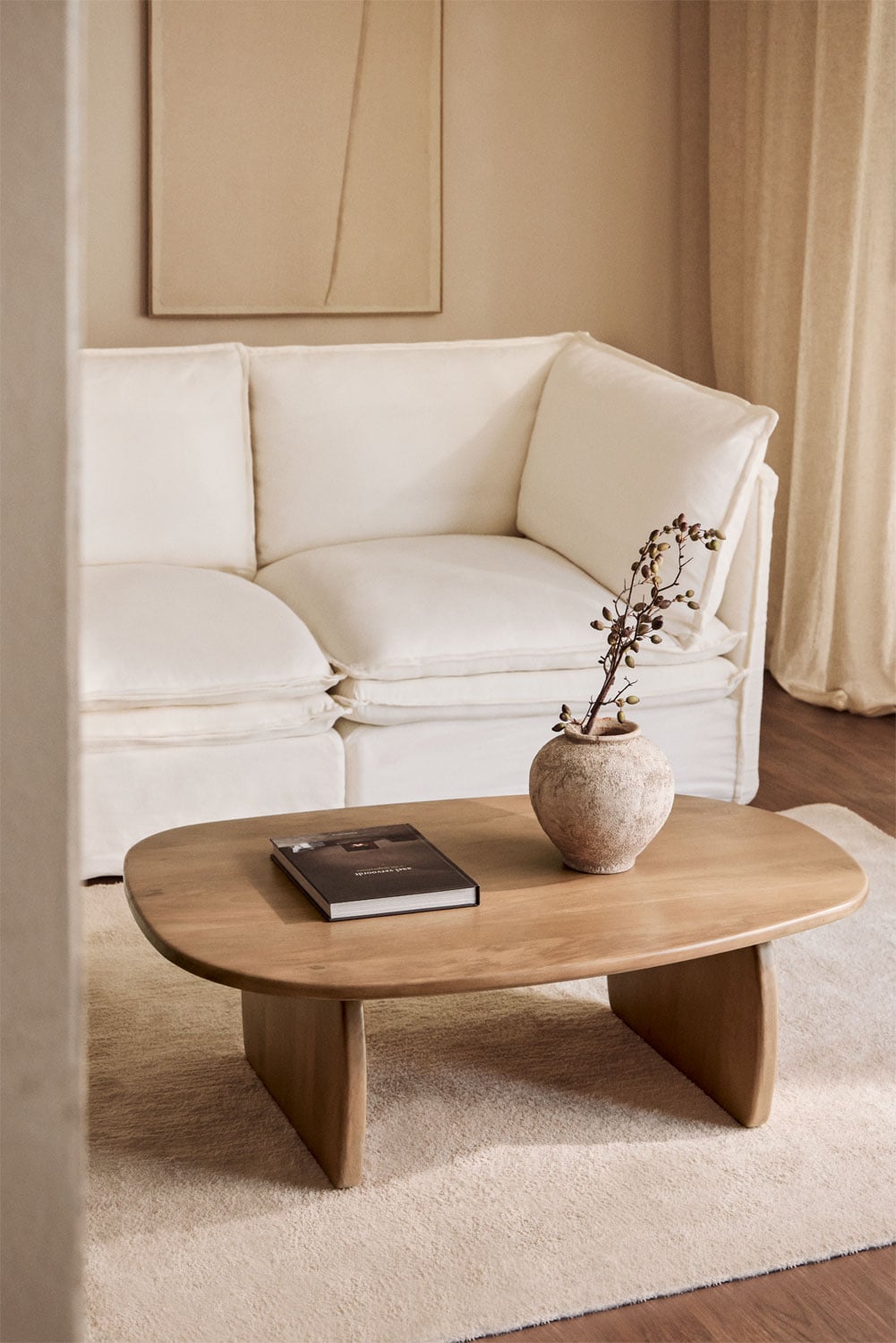 Nuestra mesa de centro ovalada está fabricada con madera clara de alta calidad, seleccionada cuidadosamente para garantizar durabilidad y resistencia. El acabado mate resalta la belleza natural de la madera y ofrece una superficie suave al tacto. La solidez de su estructura, con dos soportes rectangulares anchos, proporciona una estabilidad excepcional, asegurando que esta mesa de centro se convierta en un mueble fiable y duradero en tu hogar. La atención al detalle en la selección de materiales y en el proceso de fabricación se traduce en una pieza de mobiliario de la que podrás disfrutar durante años.