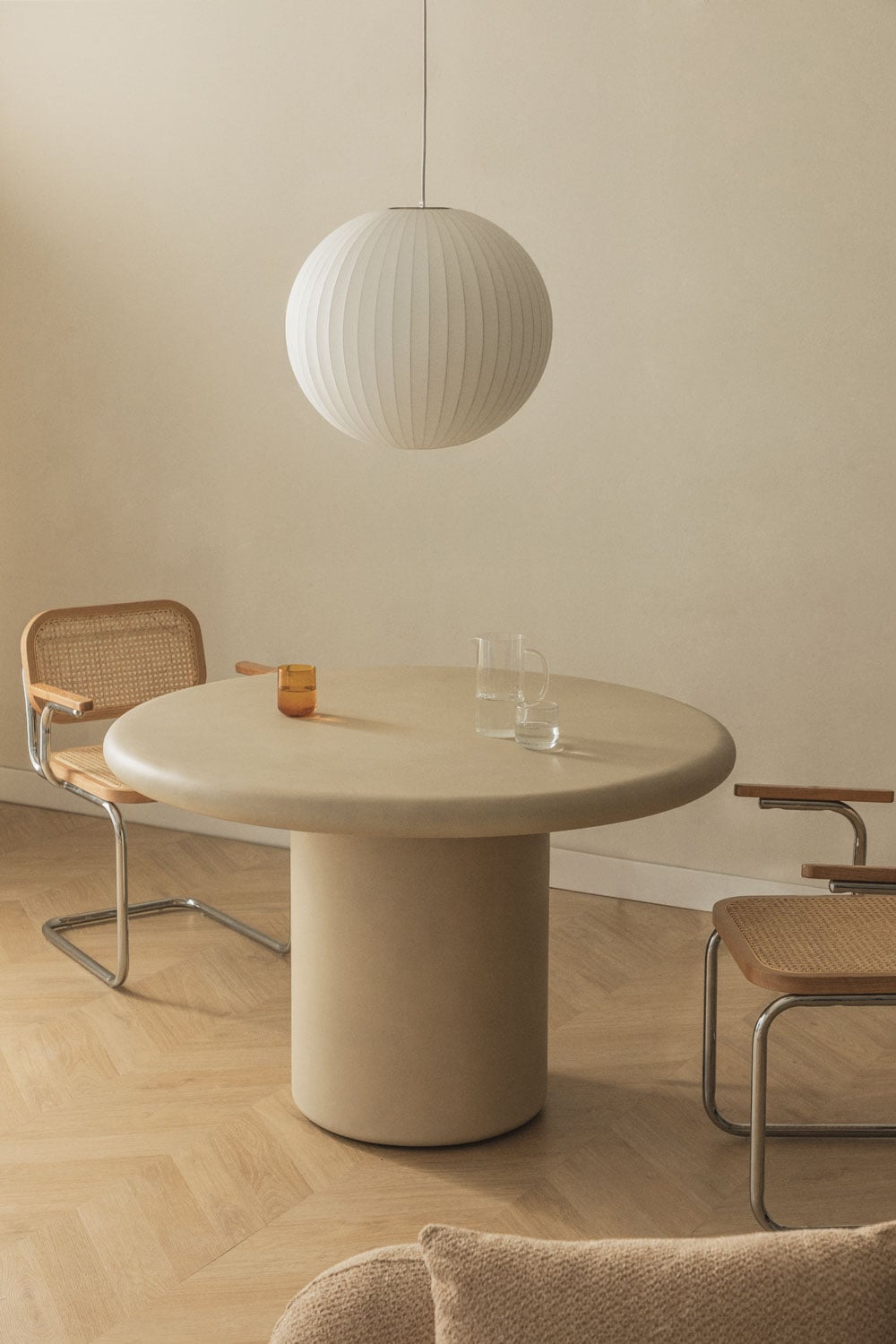 Descubre la mesa de comedor redonda de cemento beige Namara, una pieza central que fusiona la elegancia minimalista con la resistencia duradera del cemento. Perfecta para tu salón o comedor, esta mesa no solo es un mueble funcional, sino una declaración de estilo que aportará un toque de diseño contemporáneo a tu hogar. Su silueta redonda invita a la conversación y la cercanía, creando un ambiente acogedor para tus reuniones familiares o con amigos.