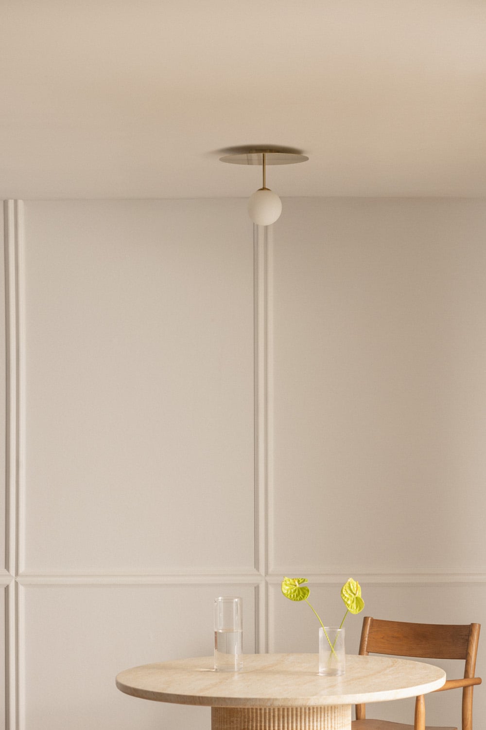 Esta mesa de comedor destaca por la excepcional calidad de sus materiales. La tapa de travertino beige claro, cuidadosamente seleccionada, aporta un toque de distinción y durabilidad. Su pedestal cilíndrico con textura acanalada, además de brindar un soporte robusto, añade un detalle visual único que captura la atención. La combinación de la piedra natural con la madera en la escena, como la silla de color marrón medio, crea un equilibrio perfecto entre calidez y modernidad. El travertino es conocido por su resistencia y belleza atemporal, garantizando una mesa que te acompañará durante muchos años.