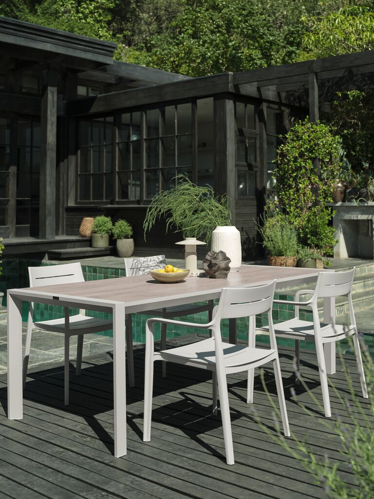 Con su estilo moderno, la mesa OTTERUP se integra fácilmente en diversos ambientes exteriores. Su diseño limpio y minimalista la convierte en una pieza versátil que puedes combinar con sillas de diferentes estilos, desde las más clásicas hasta las más contemporáneas. Imagina esta mesa en tu jardín, rodeada de plantas y flores, creando un rincón acogedor y relajante. O visualízala en tu terraza, como el centro de un espacio social donde compartir momentos especiales. Su color neutro y su forma rectangular la hacen ideal para crear ambientes armónicos y equilibrados. La mesa OTTERUP no solo es un mueble, sino una fuente de inspiración para crear un espacio exterior único y personal.