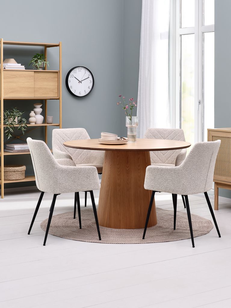 ¿Buscas renovar tu comedor con un toque de estilo nórdico y elegancia atemporal? Nuestra combinación de mesa redonda de roble y sillas tapizadas blancas es la solución perfecta. Aporta luminosidad y calidez a tu hogar, creando un ambiente acogedor para disfrutar de comidas inolvidables en familia o con amigos. Este conjunto, ideal para salón y comedor, te invita a experimentar la armonía del diseño escandinavo en su máxima expresión.