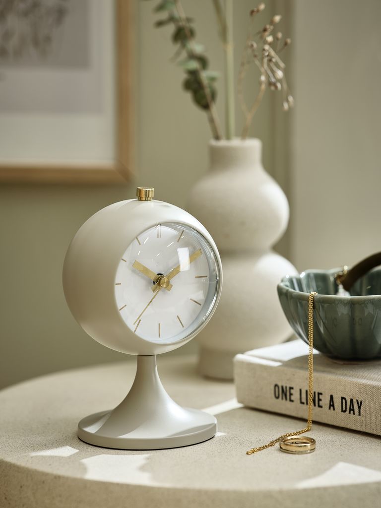 Añade un toque de elegancia y modernidad a tu hogar con nuestro reloj de mesa esférico beige estilo moderno. Una pieza de decoración que combina funcionalidad y diseño, ideal para complementar cualquier ambiente con un toque sofisticado. Su estética minimalista lo convierte en un accesorio versátil que se adapta a distintos estilos decorativos.
