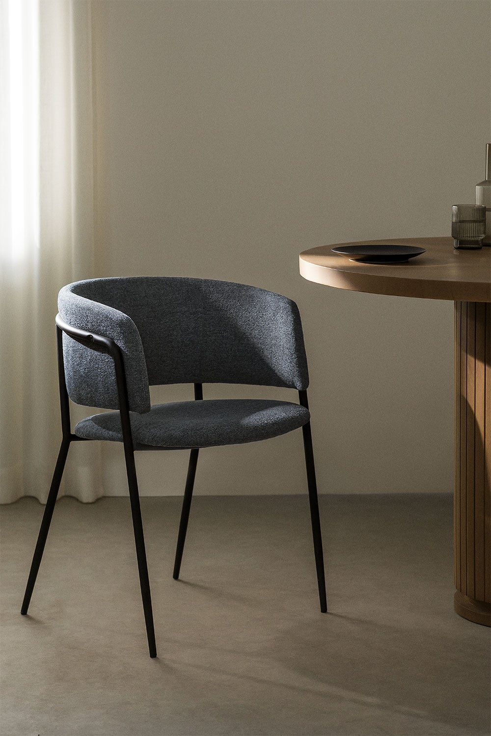 La Silla de Comedor Nalon ha sido cuidadosamente elaborada con materiales de alta calidad para garantizar su durabilidad y confort. Su estructura tubular metálica en color negro proporciona una base robusta y estable, asegurando años de uso fiable. El asiento tapizado en tela gris no solo ofrece una suavidad excepcional, sino que su textura sutil añade un detalle de distinción. La combinación de metal resistente y tejido de primera calidad hace de esta silla una pieza maestra que resistirá el paso del tiempo y el uso diario, manteniendo su atractivo estético y su funcionalidad.