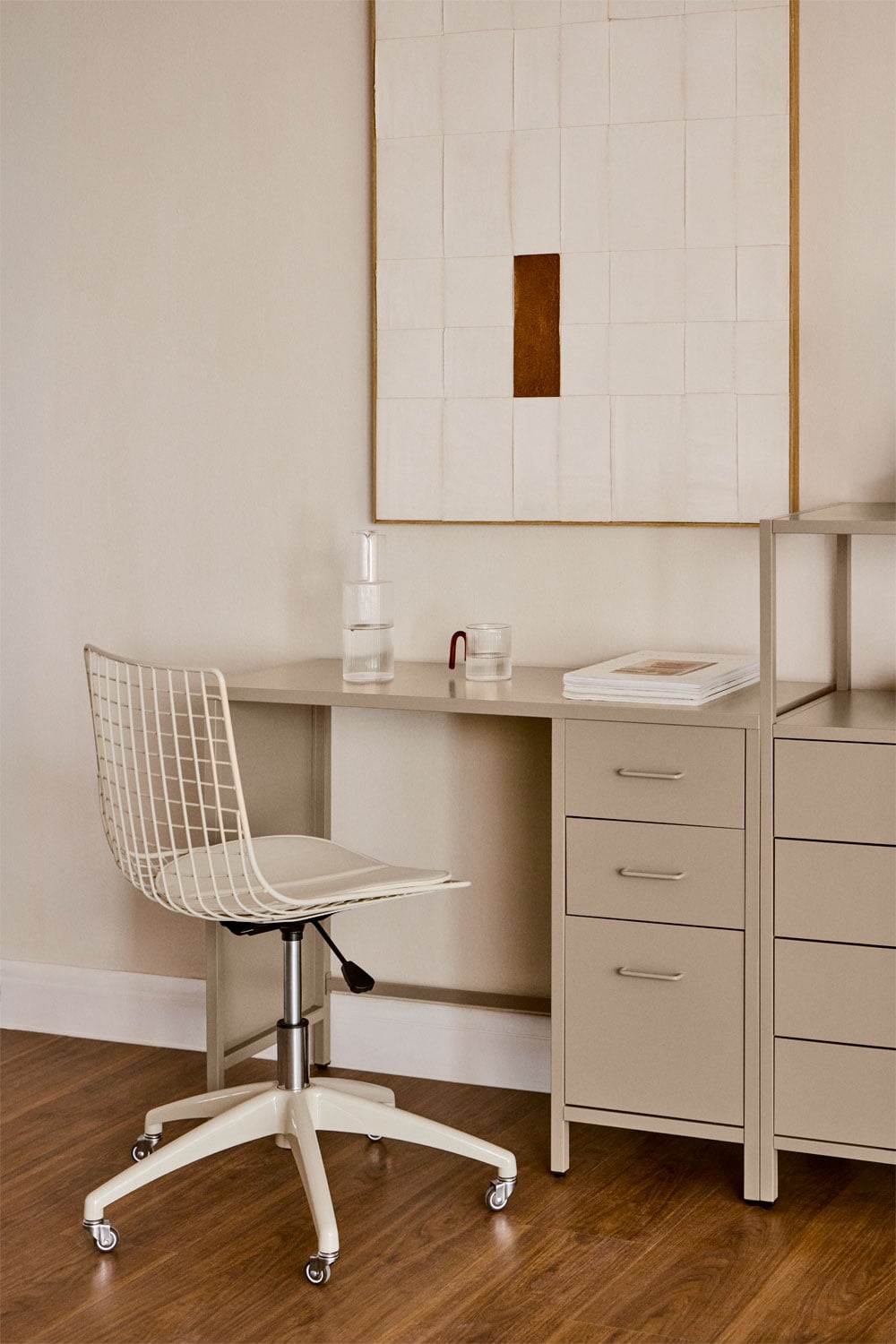 Esta silla de escritorio de estilo industrial encaja a la perfección en estancias como el estudio o el dormitorio. Su diseño de líneas rectas y su estética minimalista la hacen versátil y fácil de combinar con otros elementos decorativos. Puedes integrarla en un ambiente de estilo industrial con muebles de madera maciza y detalles en metal oscuro, o suavizar su apariencia combinándola con elementos de decoración más cálidos y textiles suaves. El color beige neutro permite que se adapte a una amplia gama de paletas de colores, desde tonos neutros y naturales hasta colores más vibrantes y atrevidos. Anímate a experimentar y crea un espacio que refleje tu personalidad.
