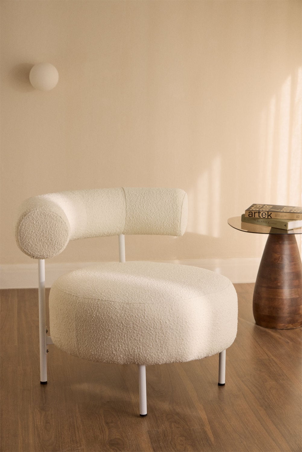 El diseño de este sillón boucle se inspira en las últimas tendencias de decoración, ofreciendo un toque contemporáneo a cualquier espacio. Su forma original, con asiento circular y respaldo en forma de C invertida, lo convierte en una pieza única y llamativa. Combina a la perfección con otros elementos decorativos de estilo moderno, minimalista o incluso nórdico. Imagina este sillón individual como el punto focal de tu salón, rodeado de cojines de colores y una alfombra suave. O úsalo como un rincón de lectura en tu dormitorio, acompañado de una lámpara de pie y una manta cálida. Las posibilidades son infinitas para crear un ambiente que refleje tu personalidad y estilo.