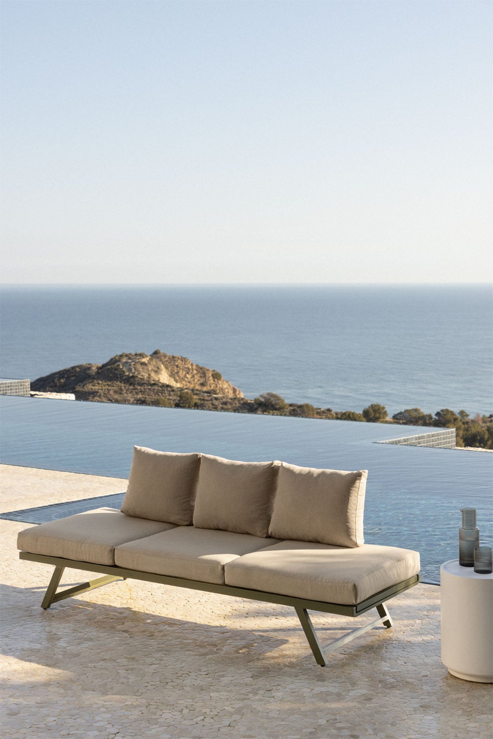 Con su diseño minimalista y contemporáneo, este sofá encaja a la perfección en ambientes modernos y de estilo nórdico. El color beige neutro de los cojines permite una fácil combinación con otros elementos decorativos, como mesas de centro de madera o alfombras de exterior con estampados geométricos. Aporta un toque de elegancia a tu terraza o jardín, creando un oasis de tranquilidad donde podrás relajarte y disfrutar del aire libre en compañía de amigos y familiares. Combínalo con plantas y farolillos para crear un ambiente aún más acogedor.