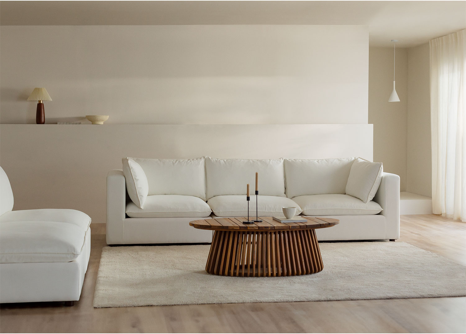 El sofá modular Estefan Style está fabricado con materiales de primera calidad para garantizar durabilidad y confort. Su estructura de madera robusta proporciona una base sólida y estable, mientras que su tapizado en tela blanca de textura suave ofrece una experiencia táctil incomparable. Cada detalle, desde los reposabrazos rectos hasta los cojines amplios y mullidos, ha sido cuidadosamente diseñado para ofrecer el máximo confort y resistencia al paso del tiempo. La elección de estos materiales no solo asegura la longevidad del sofá, sino que también contribuye a crear un ambiente cálido y sofisticado en tu salón.