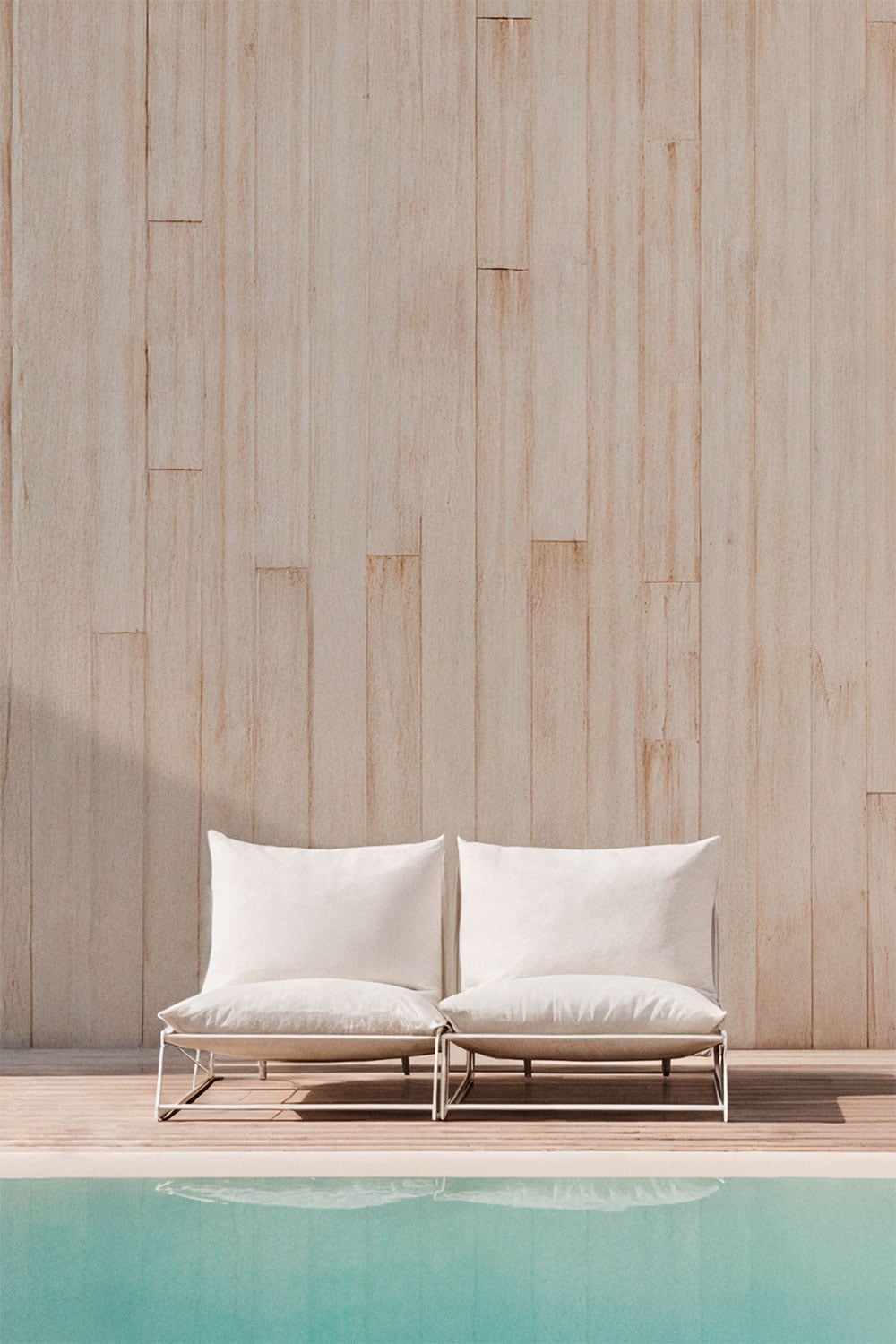 La calidad es la piedra angular del Sofá modular de jardín Amaro. Su robusta estructura está fabricada en metal tubular de alta resistencia, con un sofisticado acabado en blanco mate que no solo aporta un toque moderno, sino que también garantiza una excelente protección contra los elementos. Sobre esta sólida base, se asientan cojines amplios y mullidos, diseñados específicamente para el uso en exterior. Confeccionados en tela resistente para exterior, estos cojines, disponibles en un elegante blanco o crema muy claro, ofrecen una comodidad excepcional y una gran durabilidad, soportando la exposición al sol y la humedad sin perder su esplendor. La combinación de metal y textil de alta gama asegura una inversión en mobiliario de jardín que perdurará temporada tras temporada.