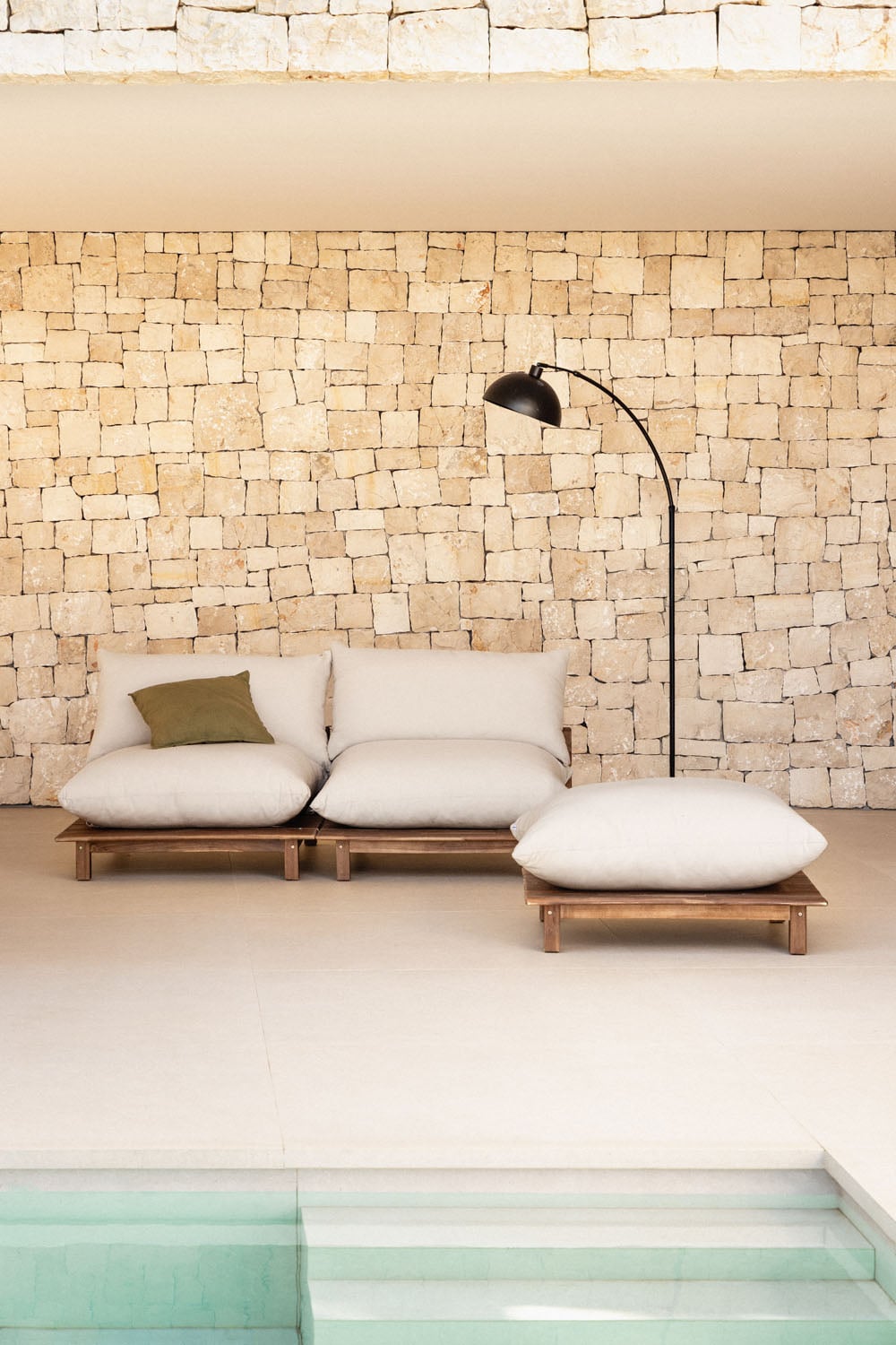 La durabilidad y la estética natural son pilares fundamentales de este conjunto. Su estructura principal está elaborada en madera de acacia, reconocida por su resistencia a la intemperie y su belleza singular, aportando un toque cálido y orgánico a tu espacio. Los cómodos cojines, tapizados en una tela beige clara de tacto agradable, están diseñados para ofrecer el máximo confort y una estética minimalista que complementa a la perfección la madera. La cuidada selección de materiales garantiza que tu sofá mantenga su esplendor temporada tras temporada, resistiendo el paso del tiempo y el uso continuado.