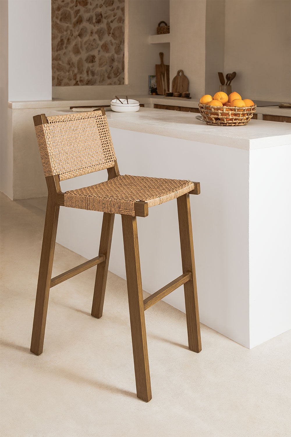 Este taburete alto se integra perfectamente en estilos rústicos, bohemios o incluso nórdicos, aportando un toque de autenticidad. Imagínalo junto a una barra de cocina de madera envejecida o en un bar con detalles de piedra natural. Su diseño versátil permite combinarlo con otros elementos decorativos, como lámparas de mimbre, textiles de algodón o plantas de interior. Atrévete a mezclarlo con piezas de metal o cerámica para crear un contraste interesante y un ambiente único. El taburete alto de madera y ratán es la base perfecta para construir un espacio lleno de personalidad y buen gusto.