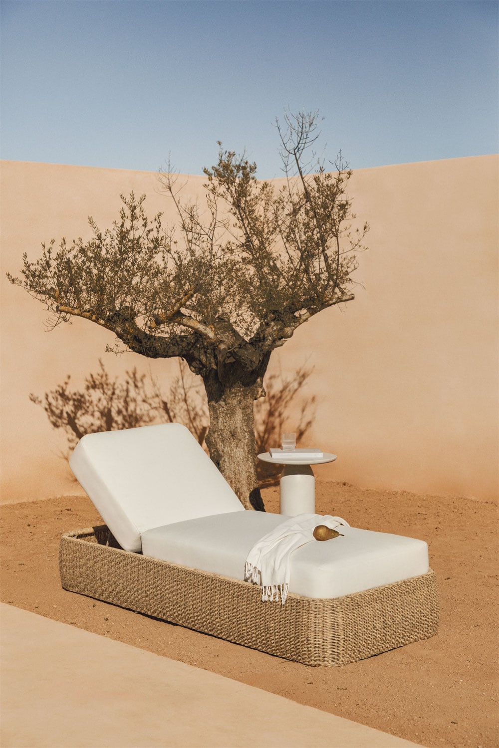 Con su estilo mediterráneo, esta tumbona evoca la serenidad y la frescura de las costas del sur. Su silueta horizontal y baja se integra armoniosamente en cualquier entorno, aportando un toque de elegancia discreta. Combínala con otros muebles de ratán o madera para crear un ambiente cálido y acogedor. Los cojines blancos ofrecen un lienzo perfecto para añadir toques de color con accesorios como cojines decorativos o mantas en tonos azules, verdes o terrosos. ¡Deja volar tu imaginación y crea el espacio de tus sueños! Perfecta para jardines y terrazas.